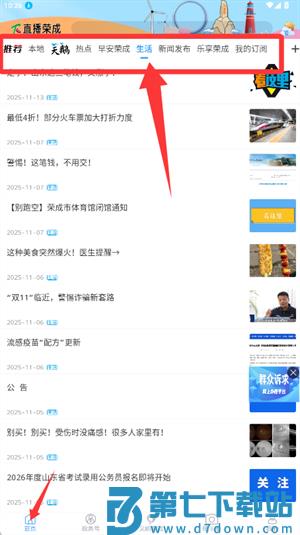 2、返回应用首页,在顶部导航栏选择生活版块浏览资讯。