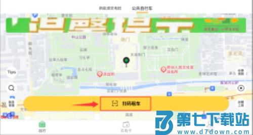 3、于主界面选择"扫码租车"功能,租赁公共自行车。