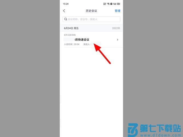 2、在历史会议页面,找到要查看的会议,可以根据会议号、参会时间等来找到,点击会议记录。