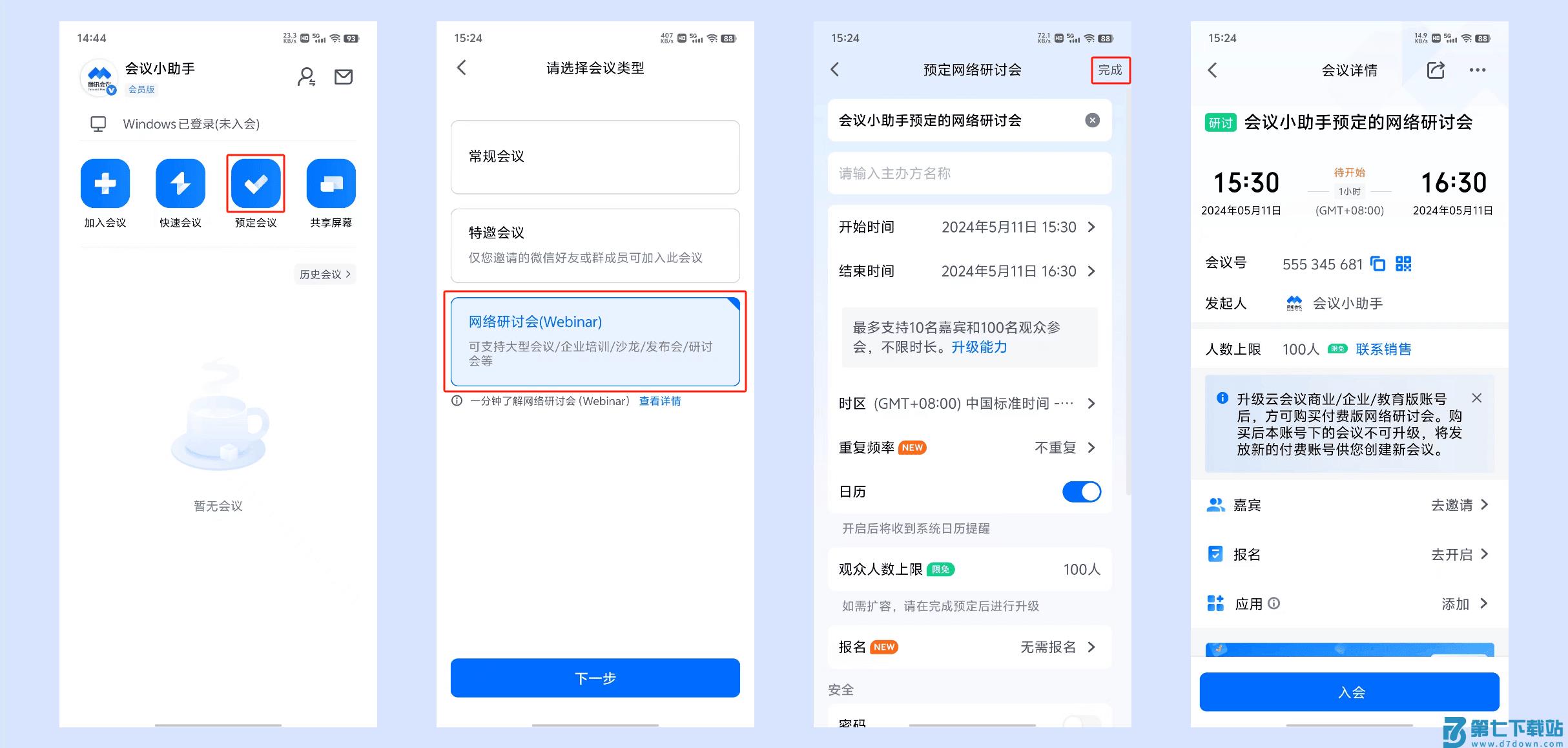 4、能一键发起会议,预约会议,还能加入会议提升会议的效率
