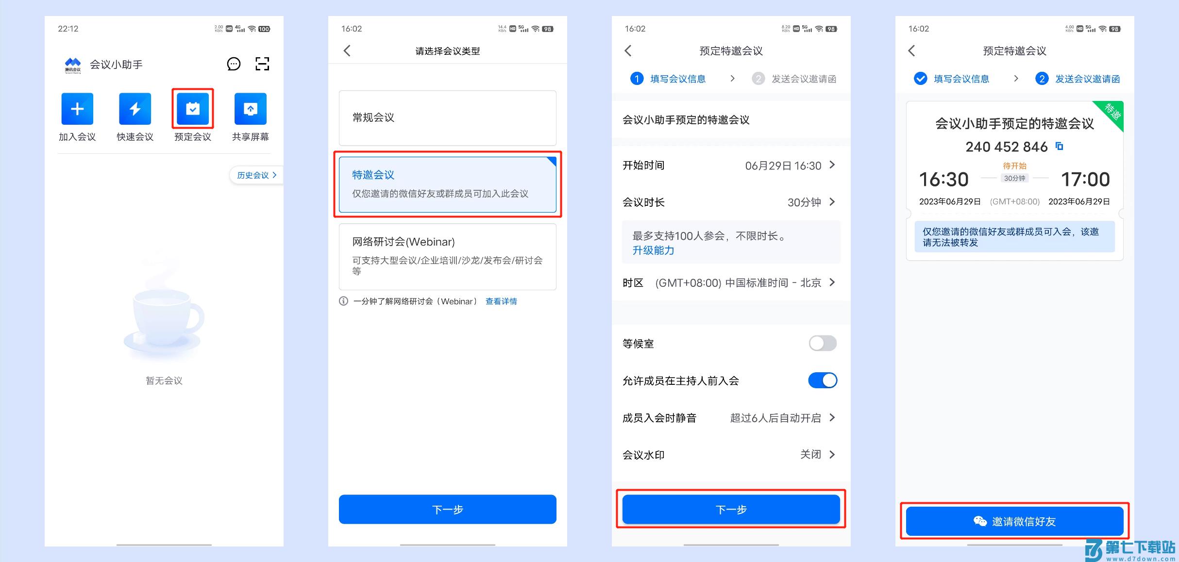 仅会议创建者可以发送邀请,无法被其他人转发;