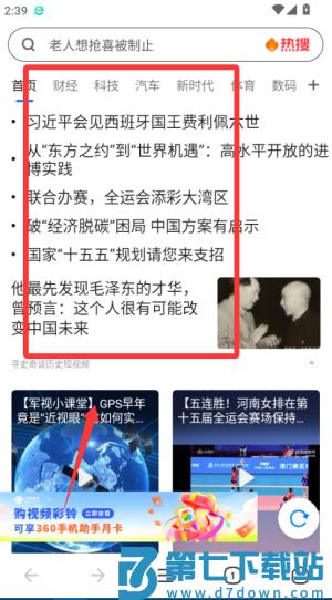 1、打开360浏览器后先在首页点击“资讯”入口,选择你感兴趣的类别比如科技、娱乐或体育。