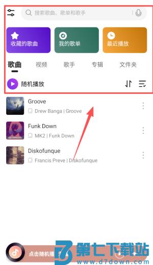 3、切换到我的音乐页面,软件会自动扫描并显示手机本地歌曲,方便你集中播放和管理已有的音乐文件。