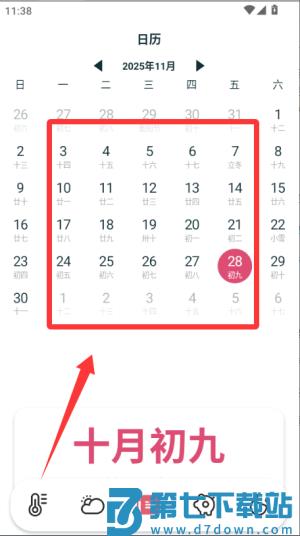 2、点击日历图标可查看当日黄历信息,包括宜忌事项和节气提醒,左右滑动能切换日期。