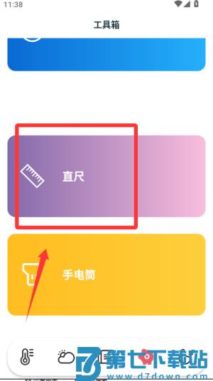 3、需要测量物体时切换到工具箱,选择直尺功能,将手机边缘贴合物体即可显示厘米读数。