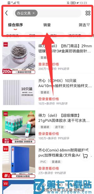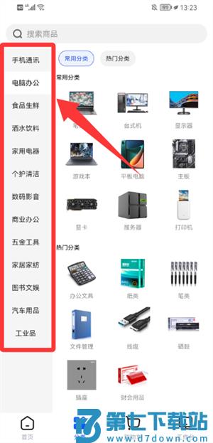 1、在分类页面选择商业办公大类,进入办公文具分类。