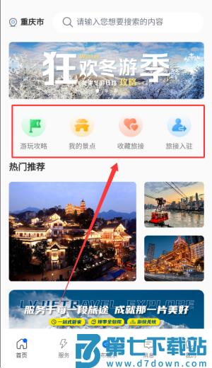 3、首页区域展示详细的旅行攻略指南、个性化景点推荐以及精选住宿资源等核心服务内容。