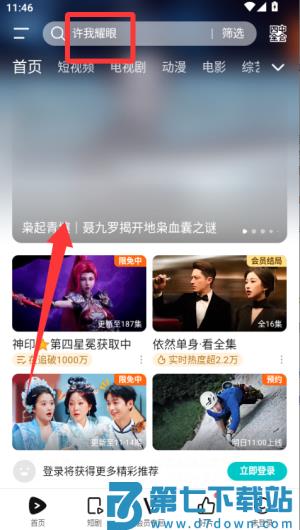 2、在搜索框输入想看的剧名或综艺名称,点击搜索结果进入详情页,可选择免费观看或开通会员解锁全集。