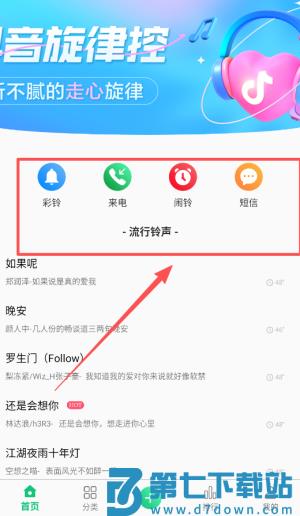 2、进入首页后可以通过分类浏览或关键词搜索找到喜欢的铃声,支持试听预览确保找到最合适的音效。