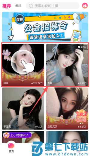 1,打开软件后先完成注册登录,在首页浏览推荐的热门主播,可以根据分类标签筛选你感兴趣的直播内容。