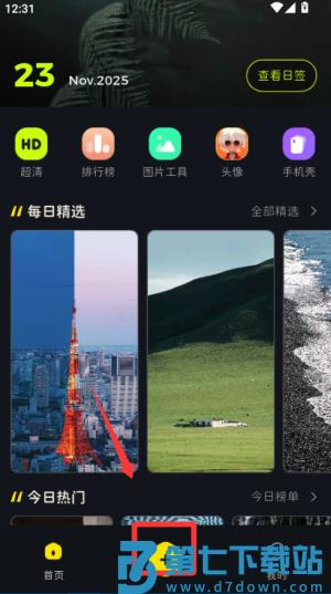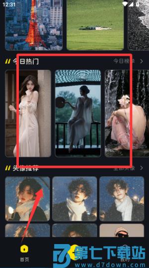 1、打开星塘图集app后,首页会自动展示最新壁纸,左右滑动即可浏览不同分类。