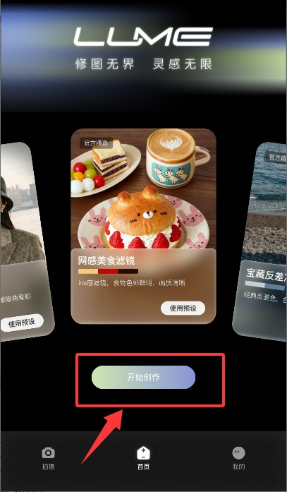 2、返回主页面,点击底部导航栏或主页中央醒目的“开始创作”图标,进入编辑工作区。