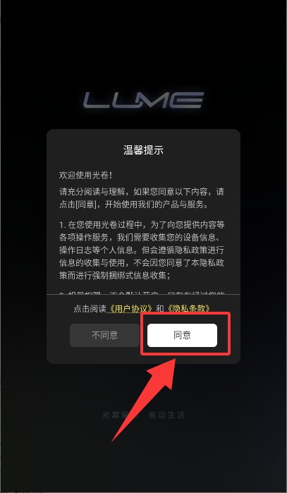1、当您首次启动本应用时,请仔细阅读界面展示的用户服务协议,确认无误后点击“同意”按钮。