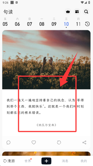 2、推荐功能精准贴心,根据用户每天浏览习惯总结感兴趣的短句类型,登录时推送名言,还配有唯美图片,提升阅读体验。