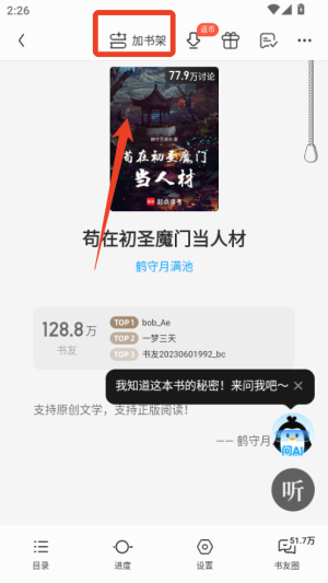 4、阅读时进度会自动保存,你还可以在书籍详情页撰写评价,与其他读者交流想法。