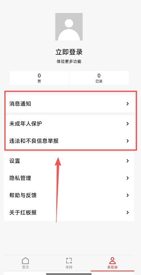 4、登录后可以查询消息通知,如看见不良信息也是可以进行举报等操作。