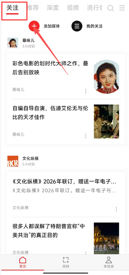 2、点击关注选择,可以查询我的关注和关注过的媒体。