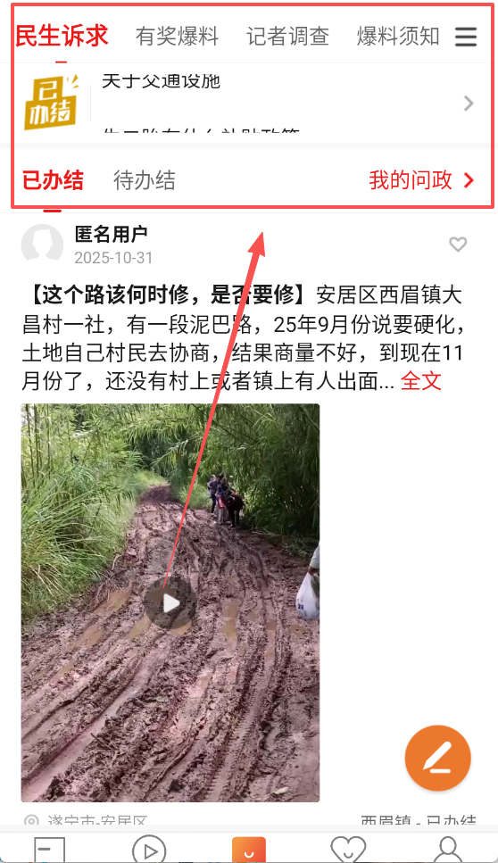 3、在民申诉求可以上传自己的诉求,也可以查看别人的诉求。