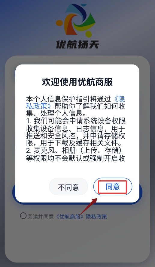 1、启动应用时会弹出使用协议,需点击同意后才可进入登录页。