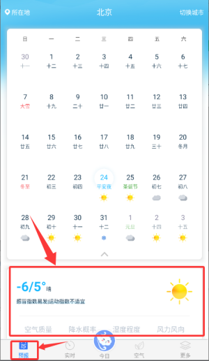 1、打开应用后在日历界面点击底部空气选项,进入相关信息页面。