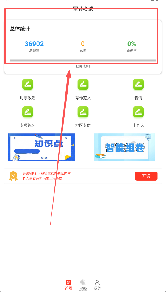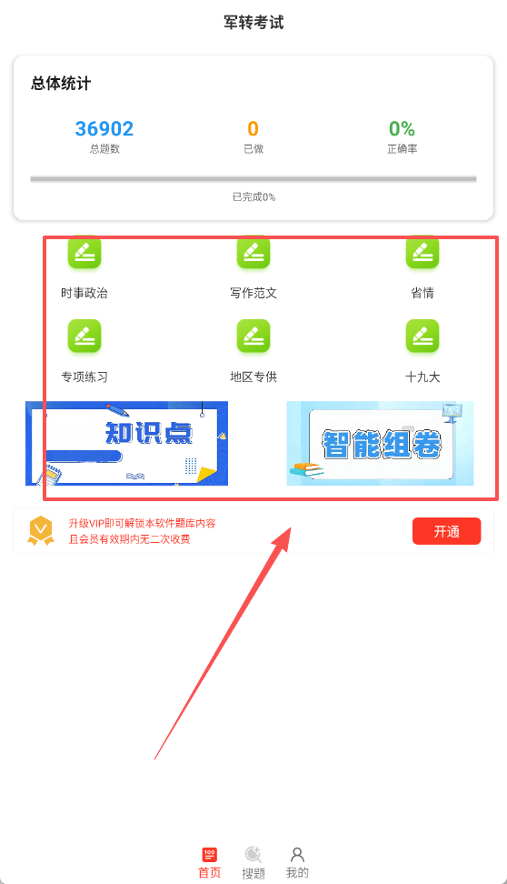 1、打开军转百分题库应用后,用户能够看到丰富的知识分类与海量习题资源。