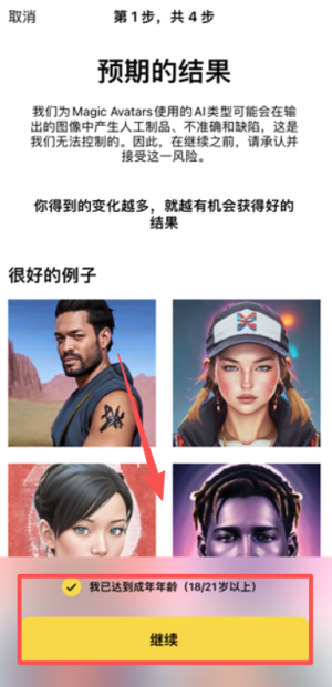 2、正式开始制作前,APP会提醒“生成效果是有风险的”,出现一些缺陷扭曲是正常情况,还要求使用者年龄达到18岁以上。