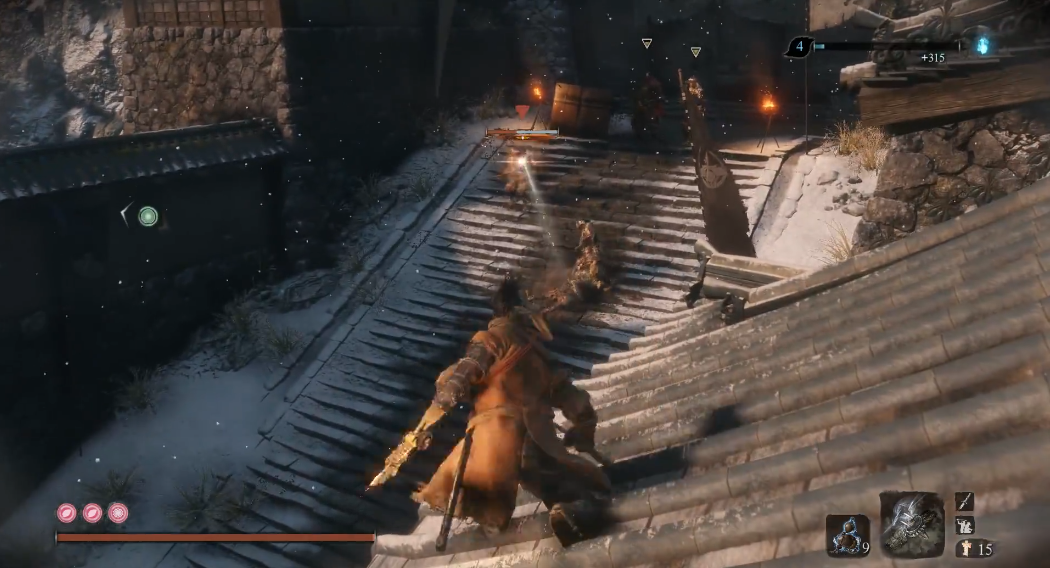 武士大将松本内藏佑位于苇名城主城阶梯顶部,在自己击败了火牛后就能遇到这个精英怪,他的身边会带着四个火枪手,所以自己注意别直接跑上去打了,不然的话自己大概率会被火枪打成筛子。正确的思路是先处理火枪手,自身可以勾到左侧房檐上,用手里剑快速清理掉台阶上的杂兵,或者直接绕到侧面暗杀。如果担心被发现也可以吃一...