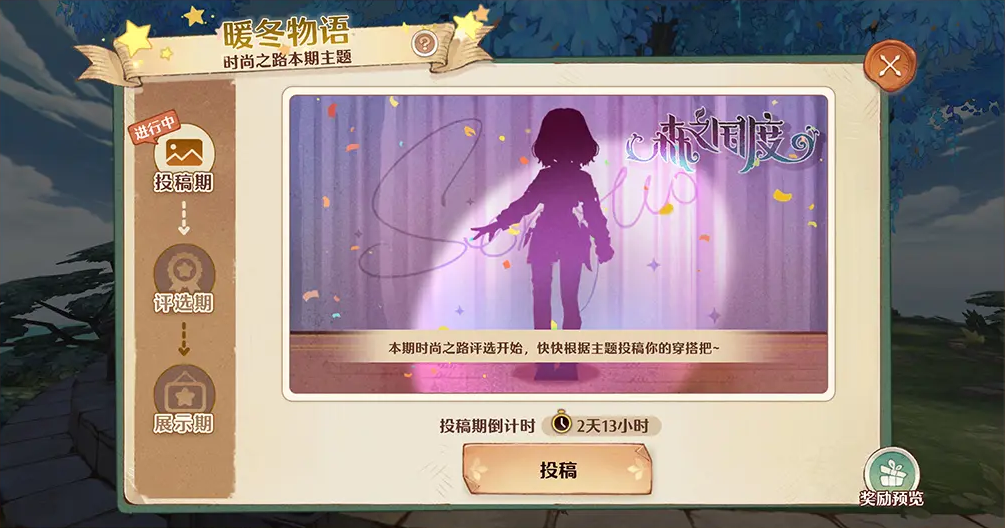 时尚之路玩法仅限等级在20级及以上的玩家参与,整个活动分为三个阶段,每个阶段都有不同的玩法。在投稿期开启时会给出一个指定的主题,玩家要根据这个主题来搭配服饰并进行投稿。点击投稿按钮就可以进入服饰搭配界面了,在这里可以选择自己已有的服饰部件来搭配,穿搭好后即可保存并投稿。初次投稿可以获得参与奖励,里面...