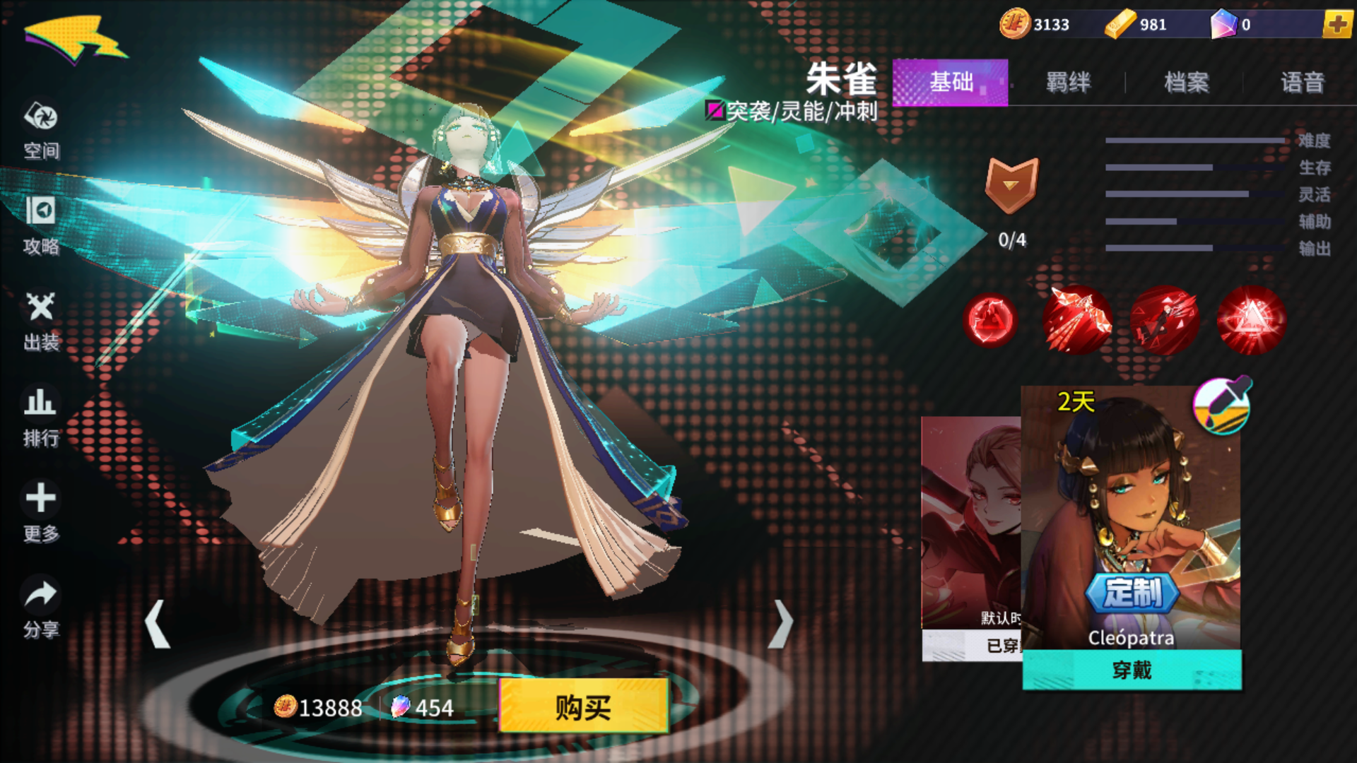朱雀石一个突进能力很强的输出角色,她持续战斗的能力很强。想要玩好的话需要一定的操作,而且要仔细钻研她的技能。获取朱雀的方法也很简单,最直接的方式就是在商城中用13888硬币购买,如果硬币不够的话,用454个五色石买也是可以的。不过这个方法比较浪费,因为五色石的获取难度较高,除了一些大型活动之外,就只...
