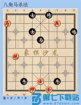 用马在对方九宫的任何一个士角位置上,与对方将形成对角,使其失去活动自由,然后用其他子力将死对方的杀法,称为“八角马”杀法,也称“八角定将”杀法。