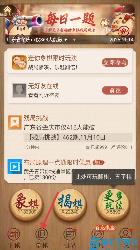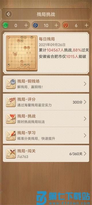 残局包括每日残局,残局-铜钱场,残局-挑战,残局-学习以及残局-闯关这几种玩法
