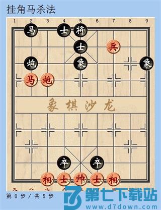 用马在对方九宫的任何一个士角位置上“将军”,使对方将不安于位,然后运用其他子力把对方将死的杀法,称为“挂角马”杀法。