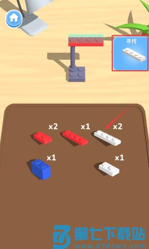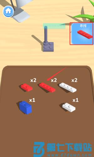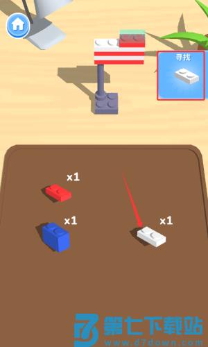 1、根据红框提示寻找白色积木,点击目标完成收集。