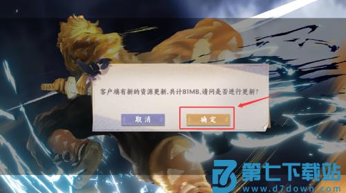 1、点击红框标注的橙色确定按钮,确认更新81MB资源。