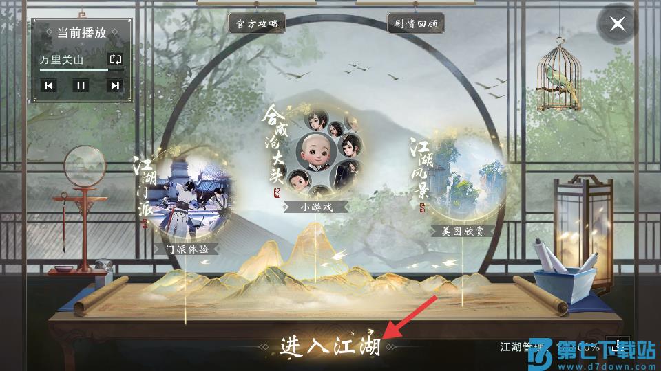 2、自由探索广阔江湖地图体验丰富剧情与奇遇事件。