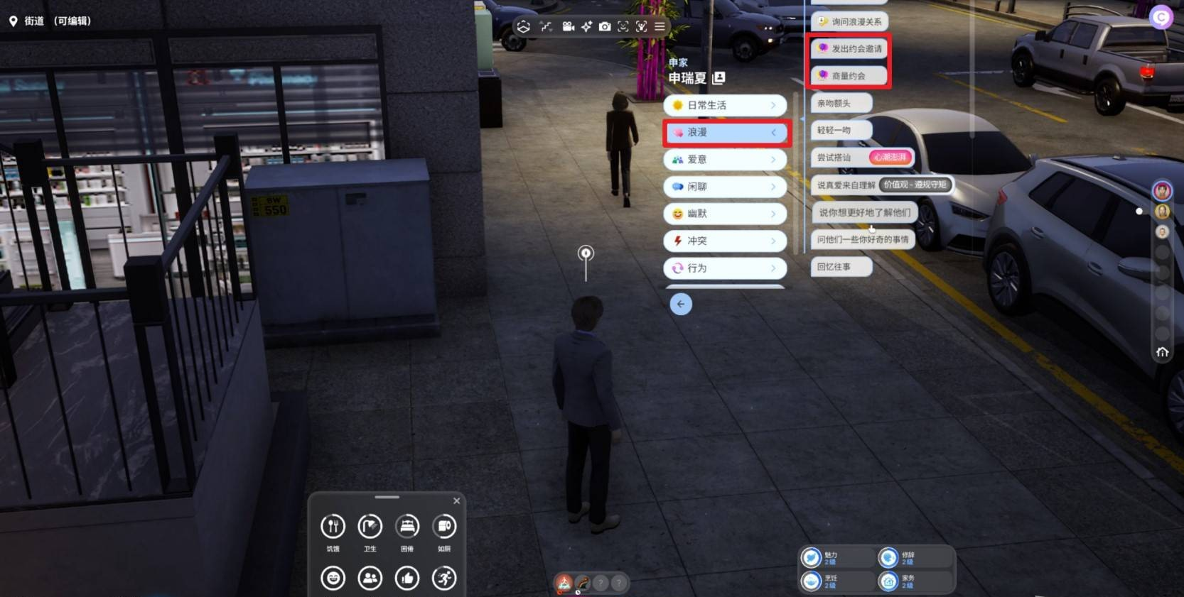 目标:成功完成一次完美的约会,提升NPC对你的好感度,为下一步的关系发展铺路!