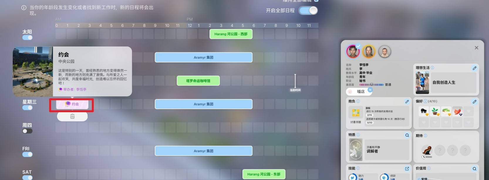 2、安排约会时间:确认约会后,系统会在手机的日程表中标记时间,确保你的角色在约会前保持良好状态(比如吃饱饭、休息好)。