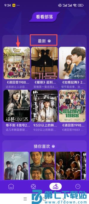 3、进入看看部落板块,浏览最新推荐的影视作品内容。