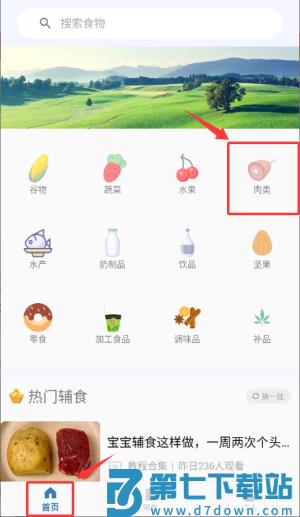 2、于首页选择肉类分类入口,浏览该类别下的相关内容页面。
