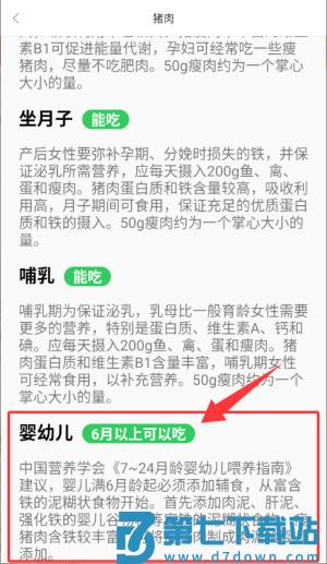 4、进入详情页获取婴幼儿食用猪肉的具体建议与指导内容。