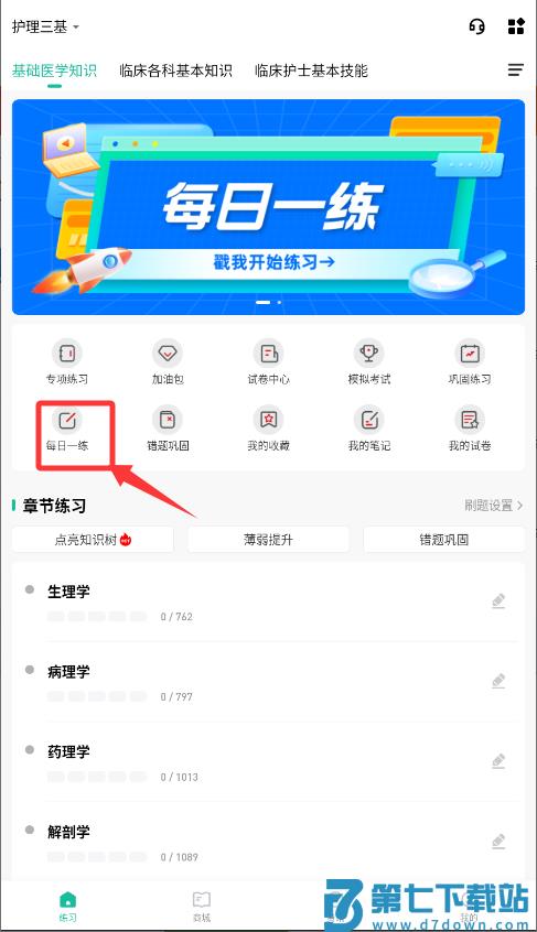 2、题库系统全面覆盖护理三基考试大纲,包含基础理论、基本知识、基本技能三大模块,每个模块下设精细化分类练习单元。