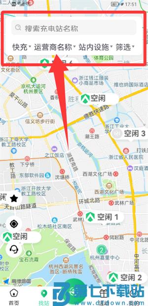 2、接着在搜索栏输入站名或通过快充等条件筛选目标充电站。