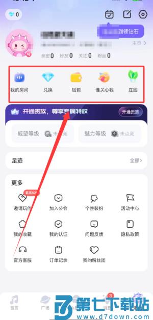 4、个人中心设有虚拟房间、积分兑换、钱包管理及访客记录等功能模块。