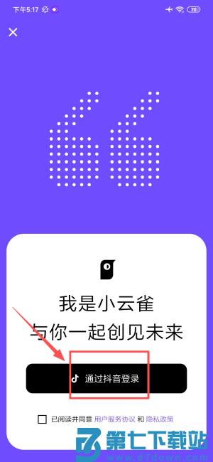 2、勾选协议后选择"通过抖音登录",完成账户验证。