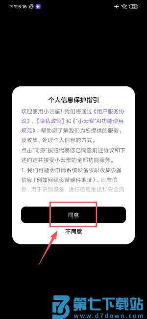 1、在个人信息保护指引提示中点击"同意",即可进入应用。