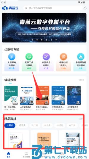 1、下载并打开青蓝云教材官方版,完成注册登录后,在首页直接搜索或浏览各大出版社的数字教材。