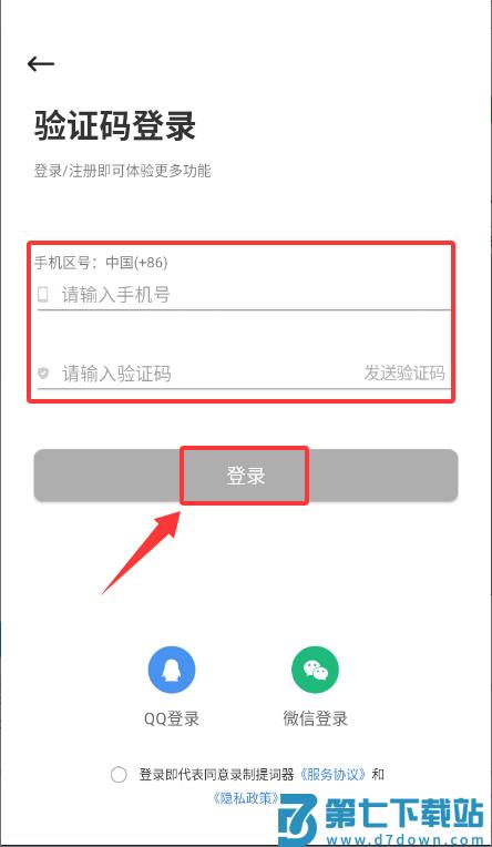 2、输入手机号与验证码并勾选协议,点击登录完成验证。