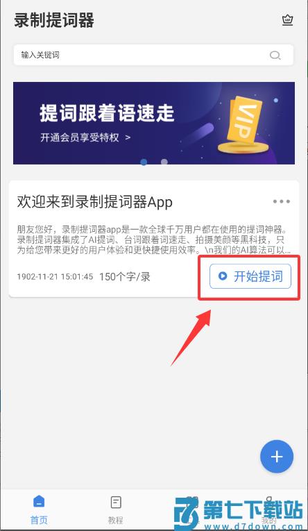 3、于主界面选择"开始提词"功能,进行提词录制操作。