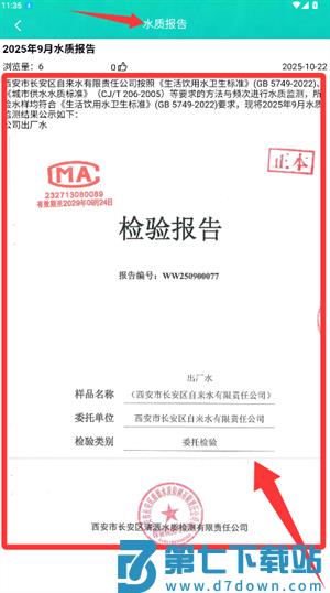 2、在主界面功能区选择水质报告入口,点击进入查询页面。