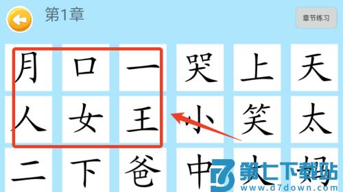 2、进入章节学习模式,从基础笔画开始跟随动画描红,逐步学习常用汉字的正确写法。